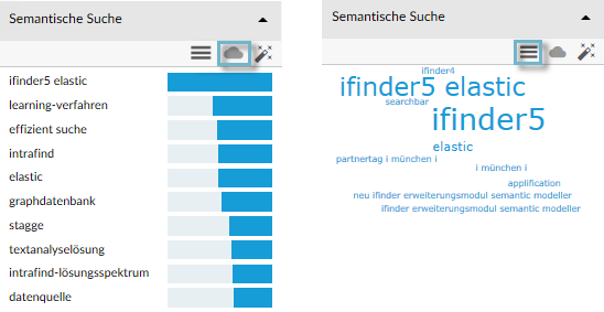 Semantische Suche als Liste oder Wortwolke